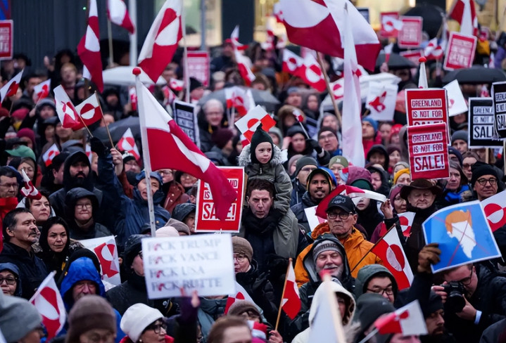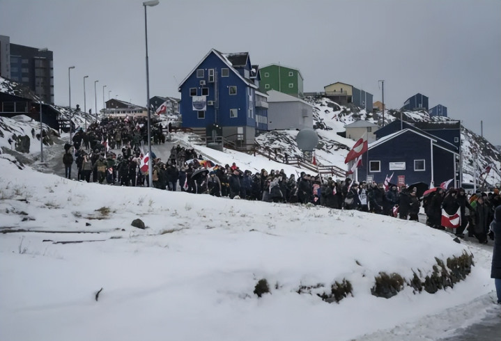 消息传到格陵兰首府努克时,原本平静的街头很快被愤怒的人群填满。寒风中,丹麦国旗与格陵兰岛旗交织翻飞,数千人举着 “格陵兰不是商品”“我们的未来自己定” 的标语,朝着美国驻努克领事馆方向行进,整齐的口号声穿透了北极的低温。