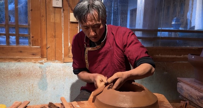 54岁的郭军华是家族第七代黑陶传人。他记得父辈时代,全村只有三户人家掌握这门手艺,“但这是祖先传下来的智慧,我得守住。”如今,这份坚守已经化为幸福实景,全村136人接力传承。同时,黑陶制作体验成为香格里拉旅游的新亮点,2025年,已有4000多名游客走进郭军华的作坊亲手体验“玩”泥巴的乐趣。
