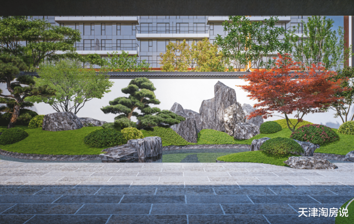 在此之上,打造超4万平米的静谧园林,呈现“一轴、六庭、四苑、八园”的样式,融入东方、禅意、细密的山水景不雅。