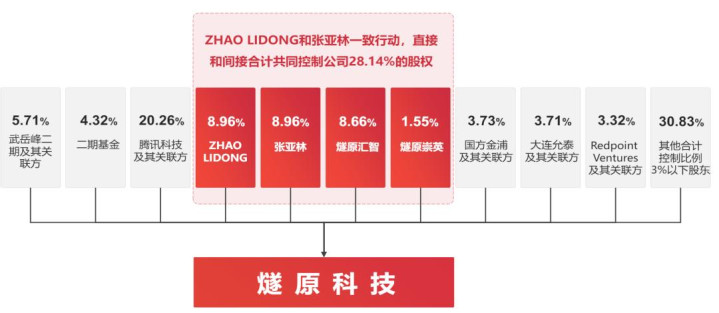 IPO前,ZHAO LIDONG、张亚林分别持股为8.9643%,燧原汇智持股为8.6596%,燧原崇英持股为1.5474%,腾讯科技持股为19.9493%,二期基金持股为4.3219%,国方金浦持股为3.5411%,武岳峰二期持股为3.0607%,大连允泰持股为2.0218%,北京燧清持股为1.7735%,武岳峰三期持股为1.7725%;