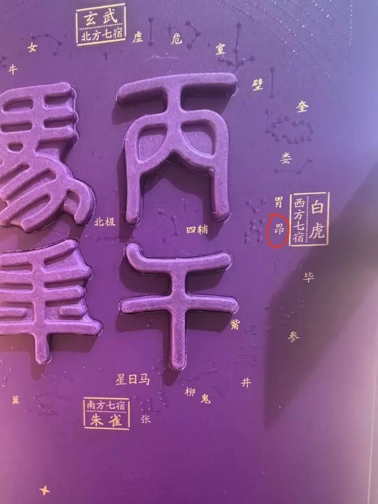据了解,古人按东南西北四个方位,将二十八星宿对应为四种神兽,即四象(青龙、朱雀、白虎、玄武),每象下辖7个星宿。其中,西方白虎辖奎、娄、胃、昴、毕、觜、参七宿。此次出现印刷错误的,正是西方白虎七宿中的“昴”字被误印为“昂”。