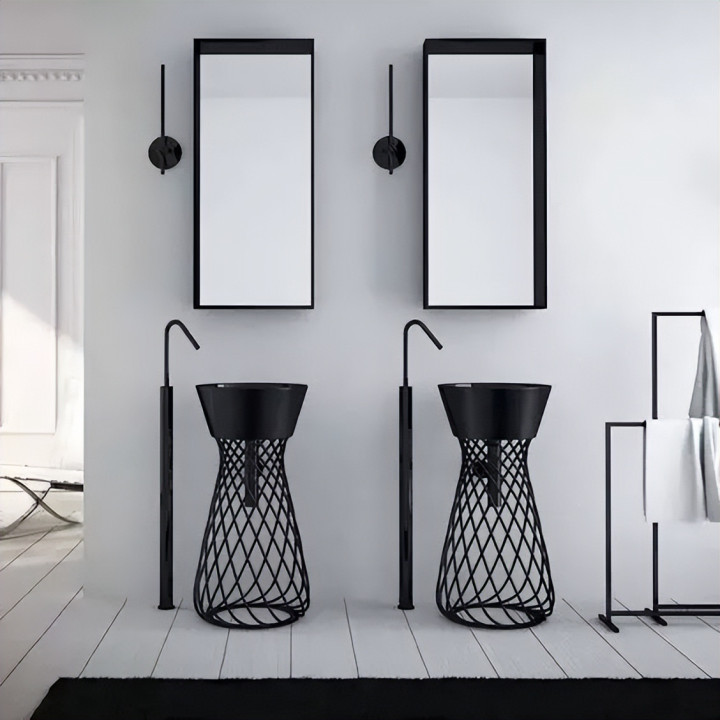 它是洗手台的“声明单品”。一个造型优好意思的台上盆(如方糖形、贝壳形、手工陶器),能遽然成为空间的视觉焦点。