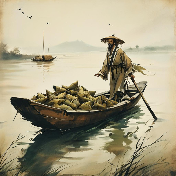 屈原投江后,渔民们心如刀割,纷纷划船追寻他的身影。为了保护他的身体不被鱼虾吞噬,人们用糯米包裹成粽子,投入江中,希望鱼虾能吃粽子而不伤屈原。这一善举,逐渐演变成端午节的传统习俗。