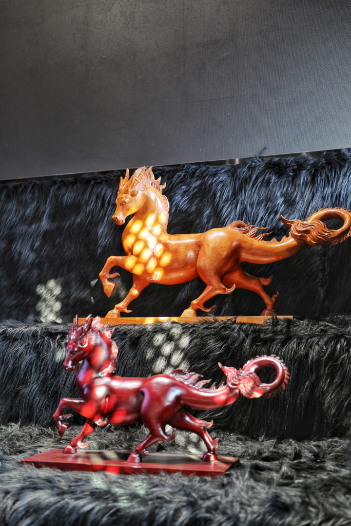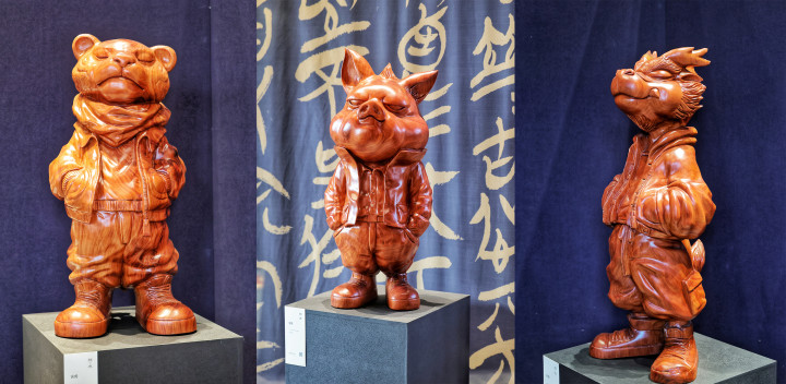 展览现场,高达2.83米的巨型木雕龙马震撼亮相,中国神话主题大型木雕原作气势拉满,《十二生肖》系列木雕展品灵动多姿,米兰app官网版吸引市民游客纷纷打卡拍照。