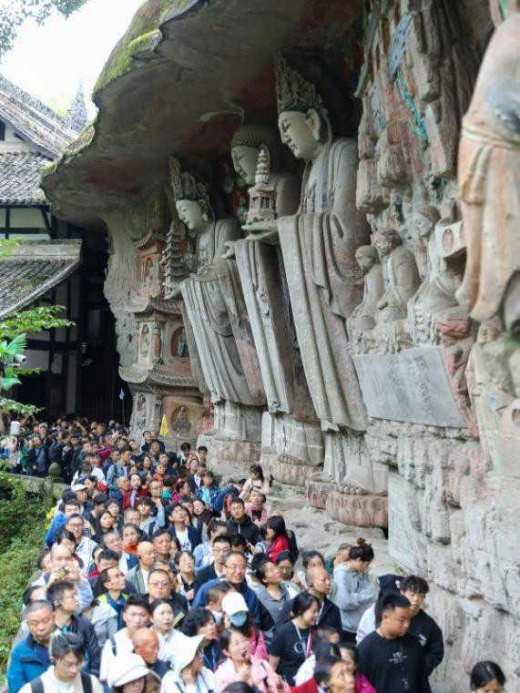 大足石刻景区吸引众多游客前往游览。大足区融媒体中心供图